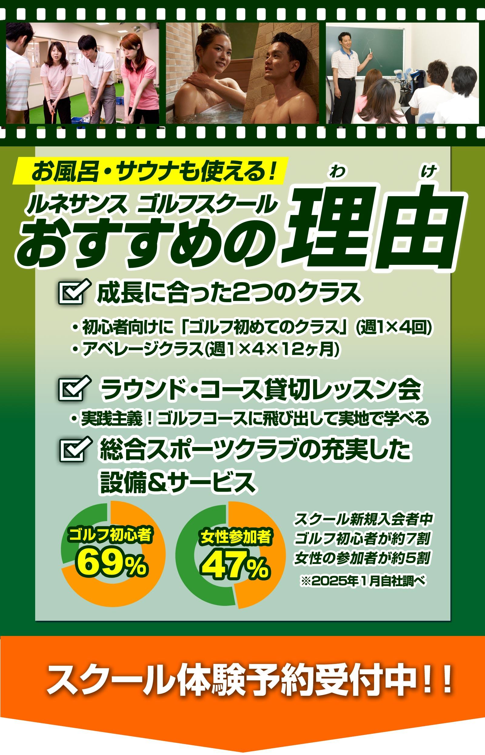 ※1ヶ月/4回の80分レッスン受講後、「ゴルフアベレージクラス」に編入となります。