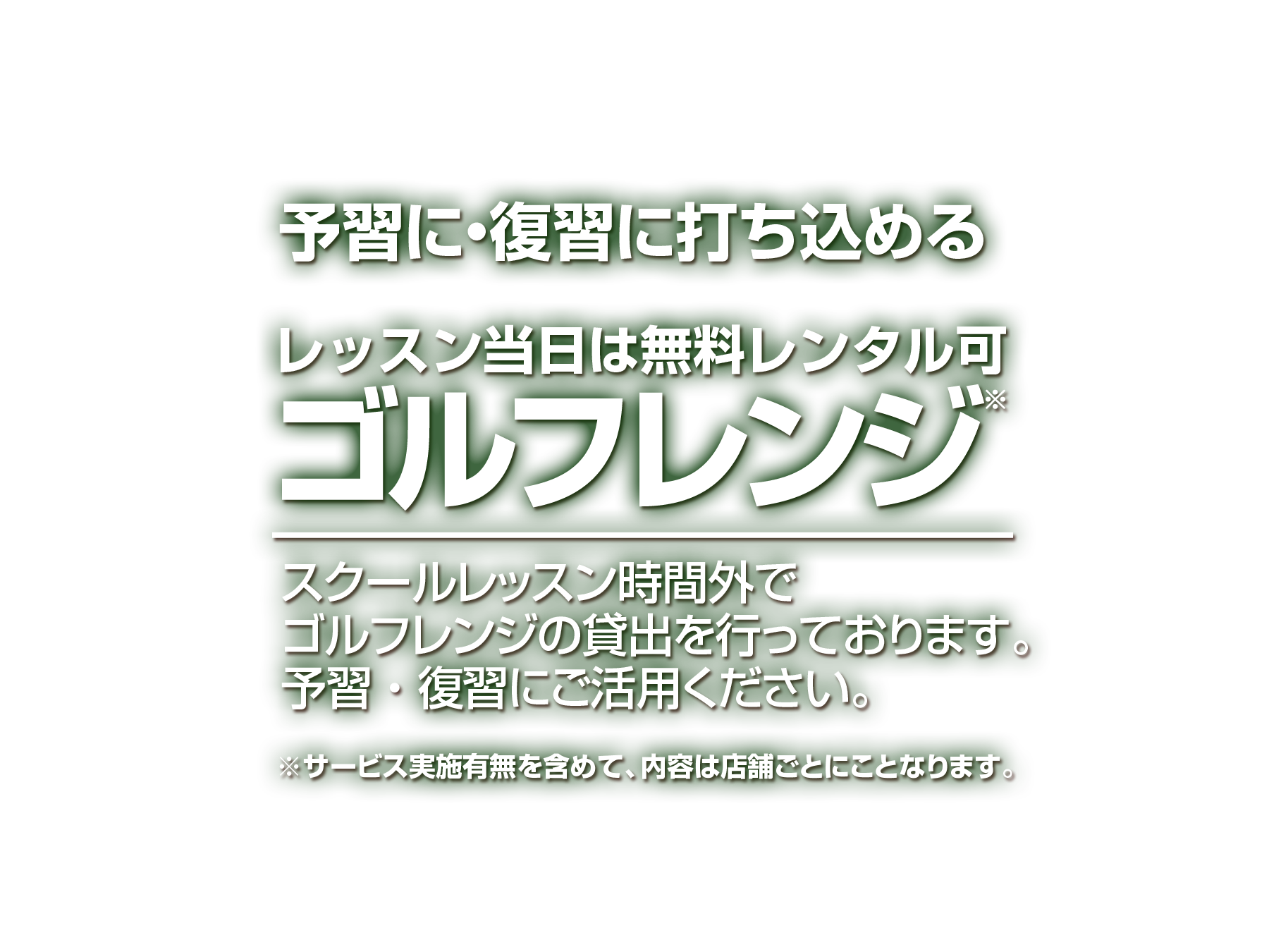 無料クラブをご用意していますので、会社帰りや休日も手ぶらでレッスン。初めての方も慌ててクラブを揃えなくても大丈夫。