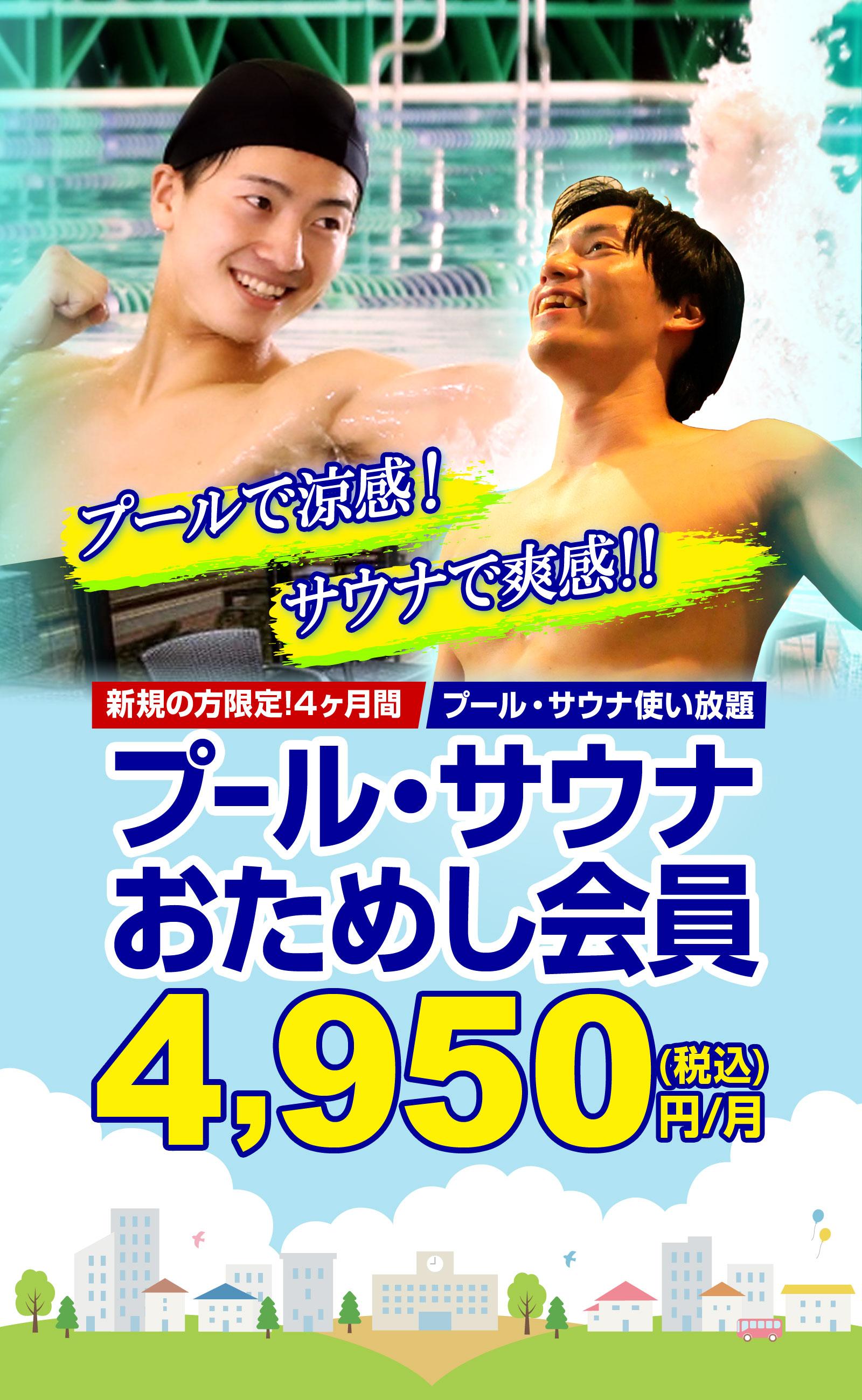プールエリア、プールレッスン、ロッカールームと付帯の温浴施設、ラウンジ ※ジム・スタジオレッスンのご利用不可。 |